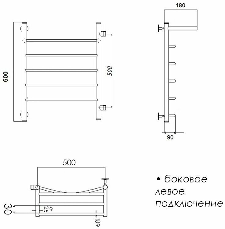 Полотенцесушитель водяной с боковым левым подключением лесенка с полкой 500х600 мм интересное: