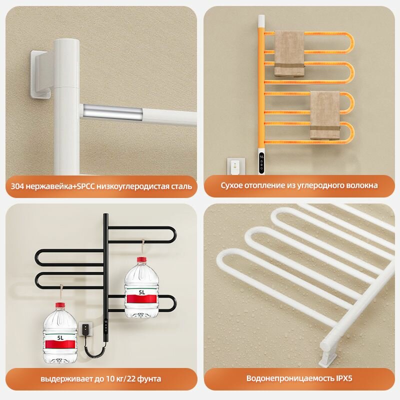 Полотенцесушитель электрический SIOYIE G68 450мм 680мм Полотенцесушитель электрический поворотный, нержавеющая сталь белый форма F-образная