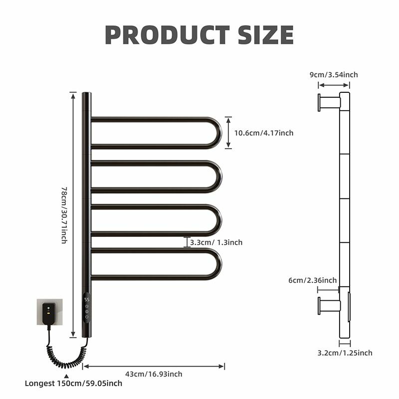 СохранитьПолотенцесушитель электрический поворотный SIOYIE G65 430мм 780мм, нержавеющая сталь черный форма F-образная интересное: