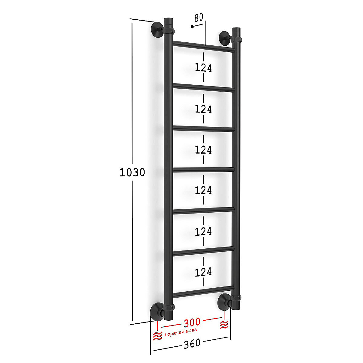 Полотенцесушитель Водяной Onix, модель Classic Black Left 300x1000 Лесенка с боковым подключением слева, черный матовый, полный комплект