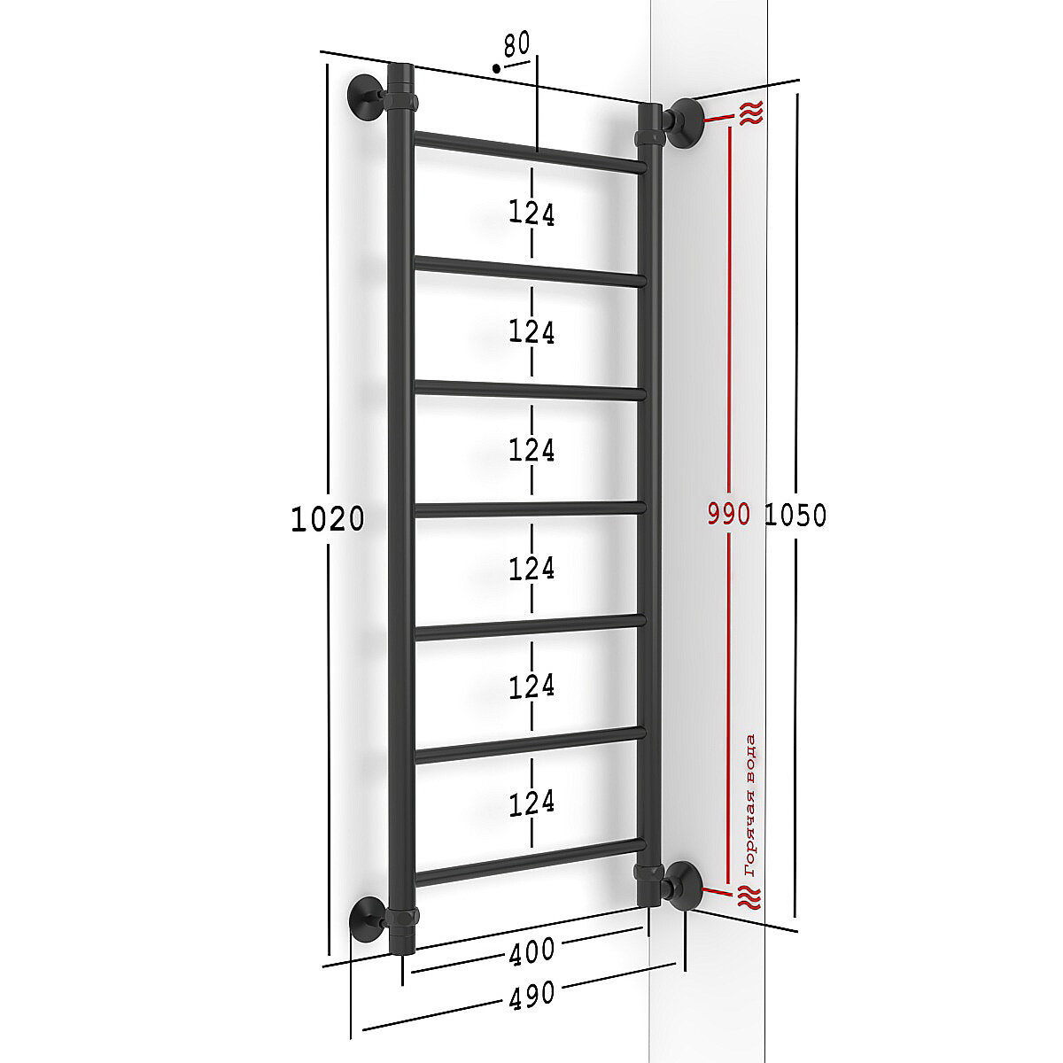 Полотенцесушитель Водяной Onix, модель Classic Black Left 400x1000 Лесенка с боковым подключением слева, черный матовый, полный комплект