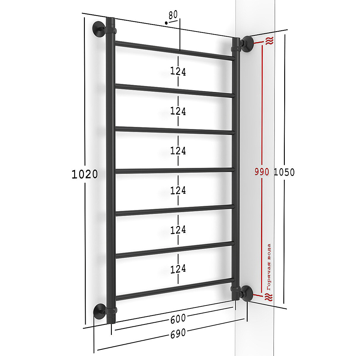 Купить Полотенцесушитель Водяной Onix, модель Classic Black Right 600x1000 Лесенка с боковым подключением справа, черный матовый, полный комплект