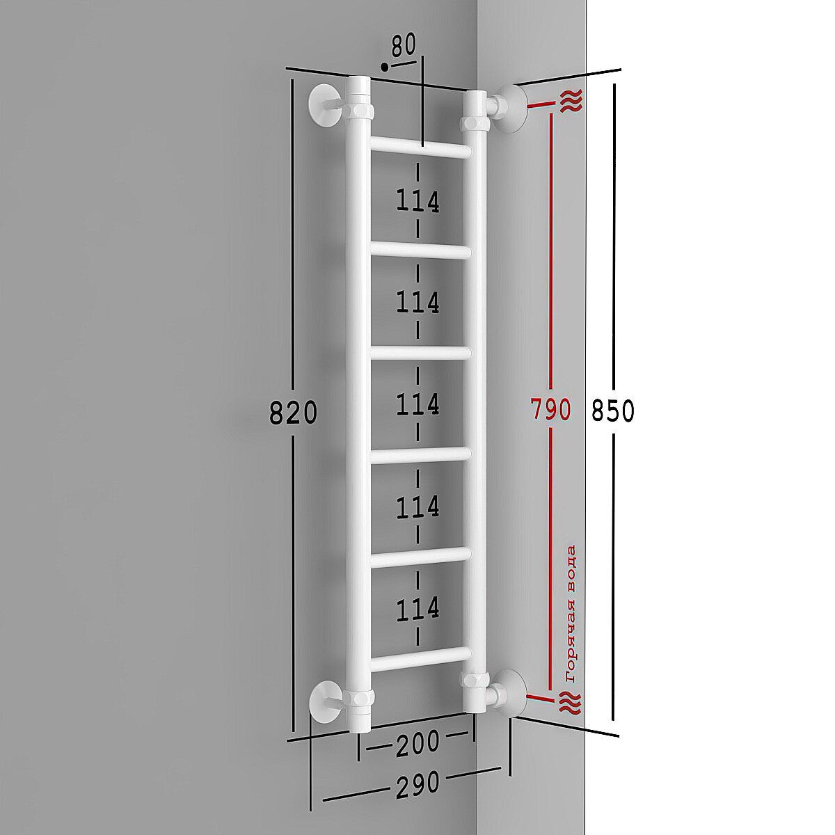 Полотенцесушитель Водяной широкий Onix Classic Лесенка 800x800 полный комплект