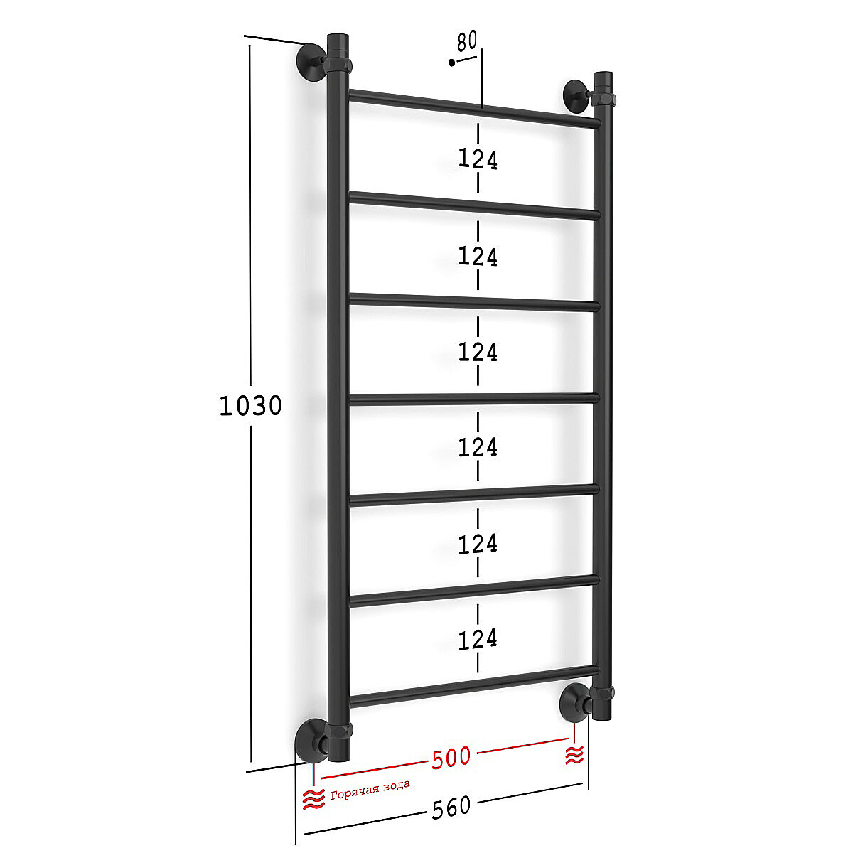 Полотенцесушитель Водяной Onix, модель Classic Black Right 500x1000 Лесенка с боковым подключением справа, черный матовый, полный комплект