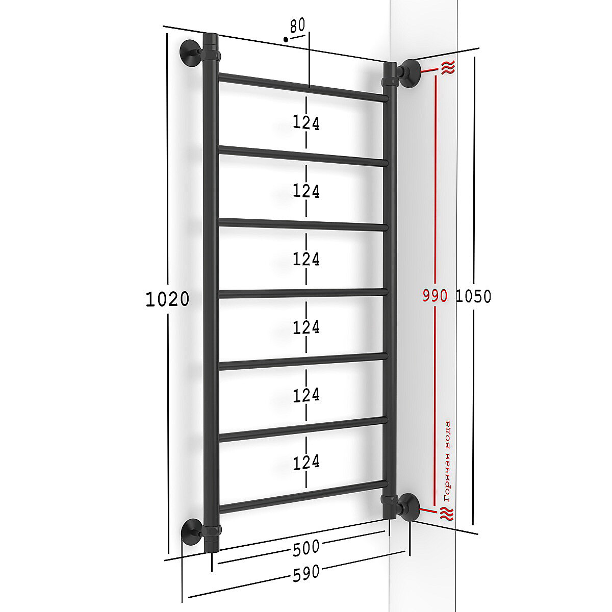 Полотенцесушитель Водяной Onix, модель Classic Black Left 500x1000 Лесенка с боковым подключением слева, черный матовый, полный комплект