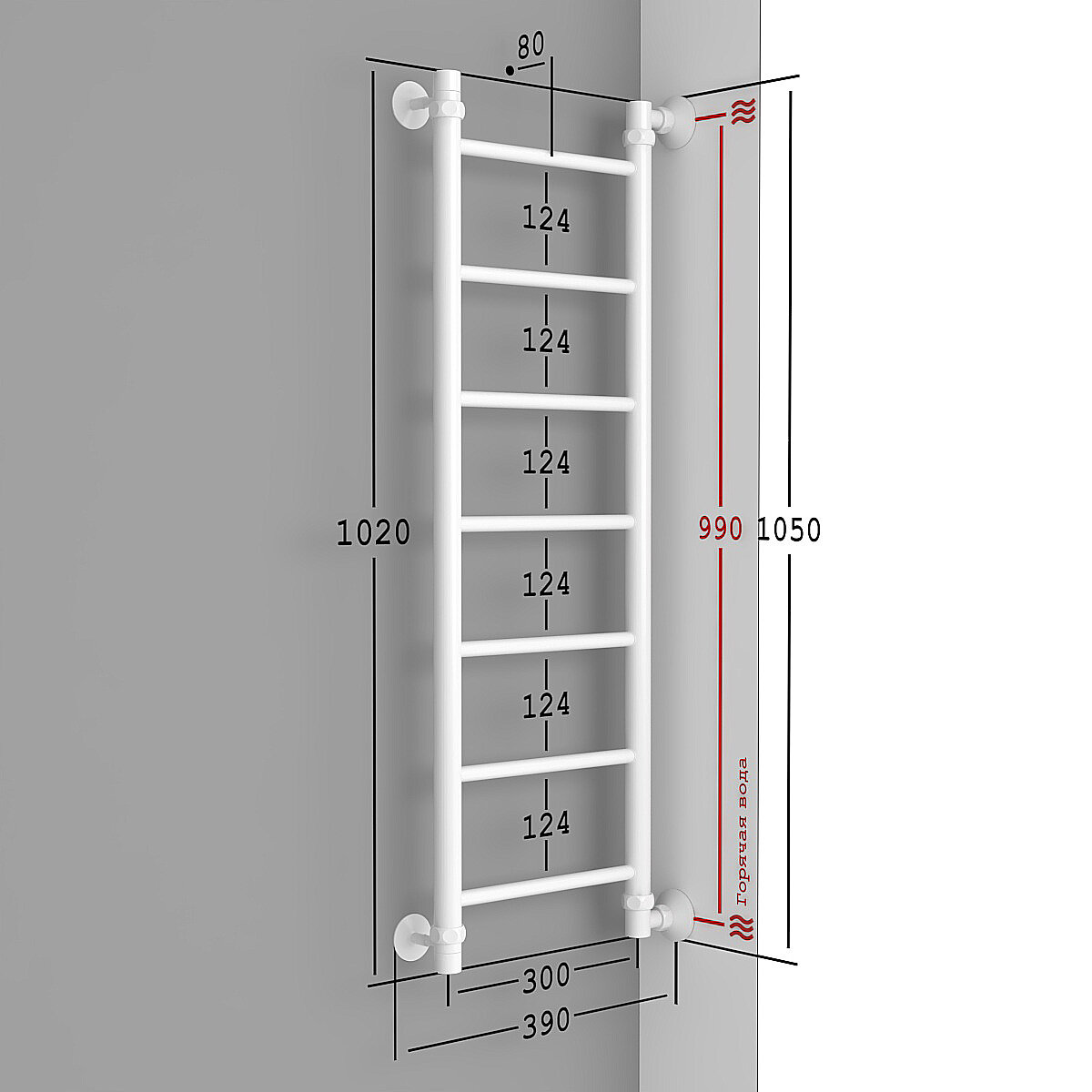 Полотенцесушитель Водяной Onix, модель Classic White Left 100x800 Лесенка с боковым подключением слева, Белый матовый, полный комплект