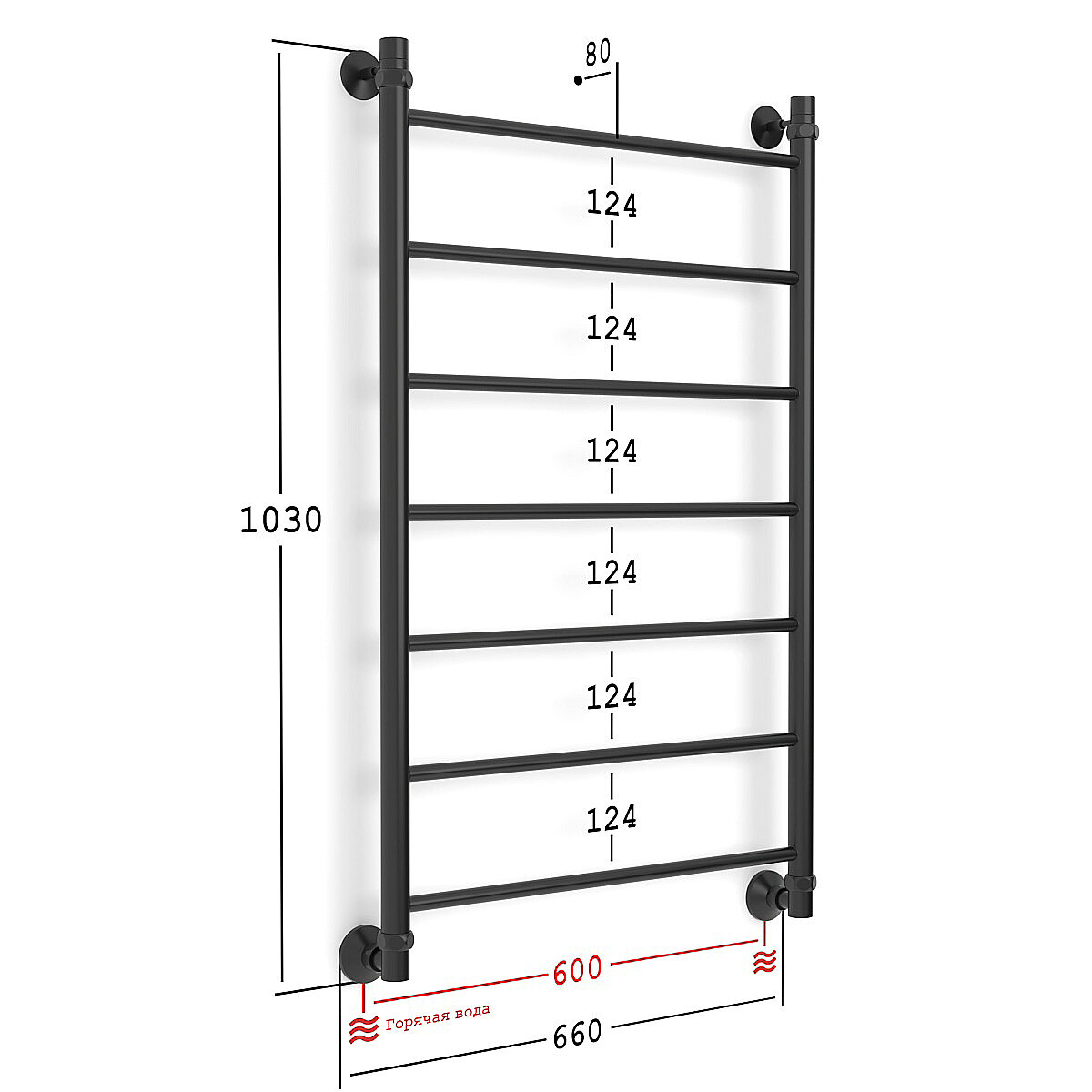Полотенцесушитель Водяной Onix, модель Classic Black Right 600x1000 Лесенка с боковым подключением справа, черный матовый, полный комплект