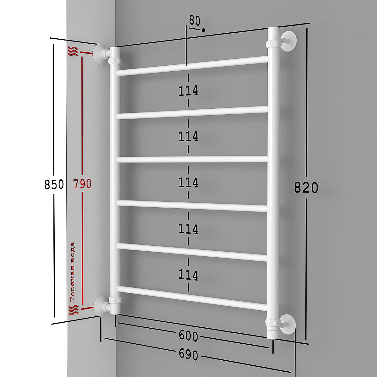 Полотенцесушитель Водяной широкий Onix Classic Лесенка 800x800 полный комплект