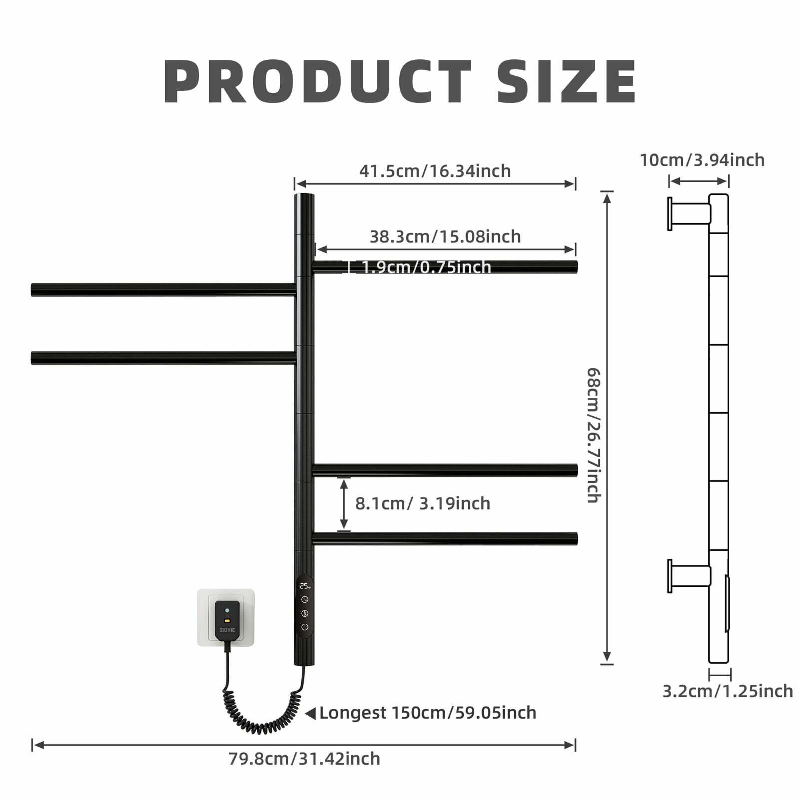 Полотенцесушитель электрический поворотный SIOYIE G63 415мм 680мм , нержавеющая сталь черный форма F-образная интересное: