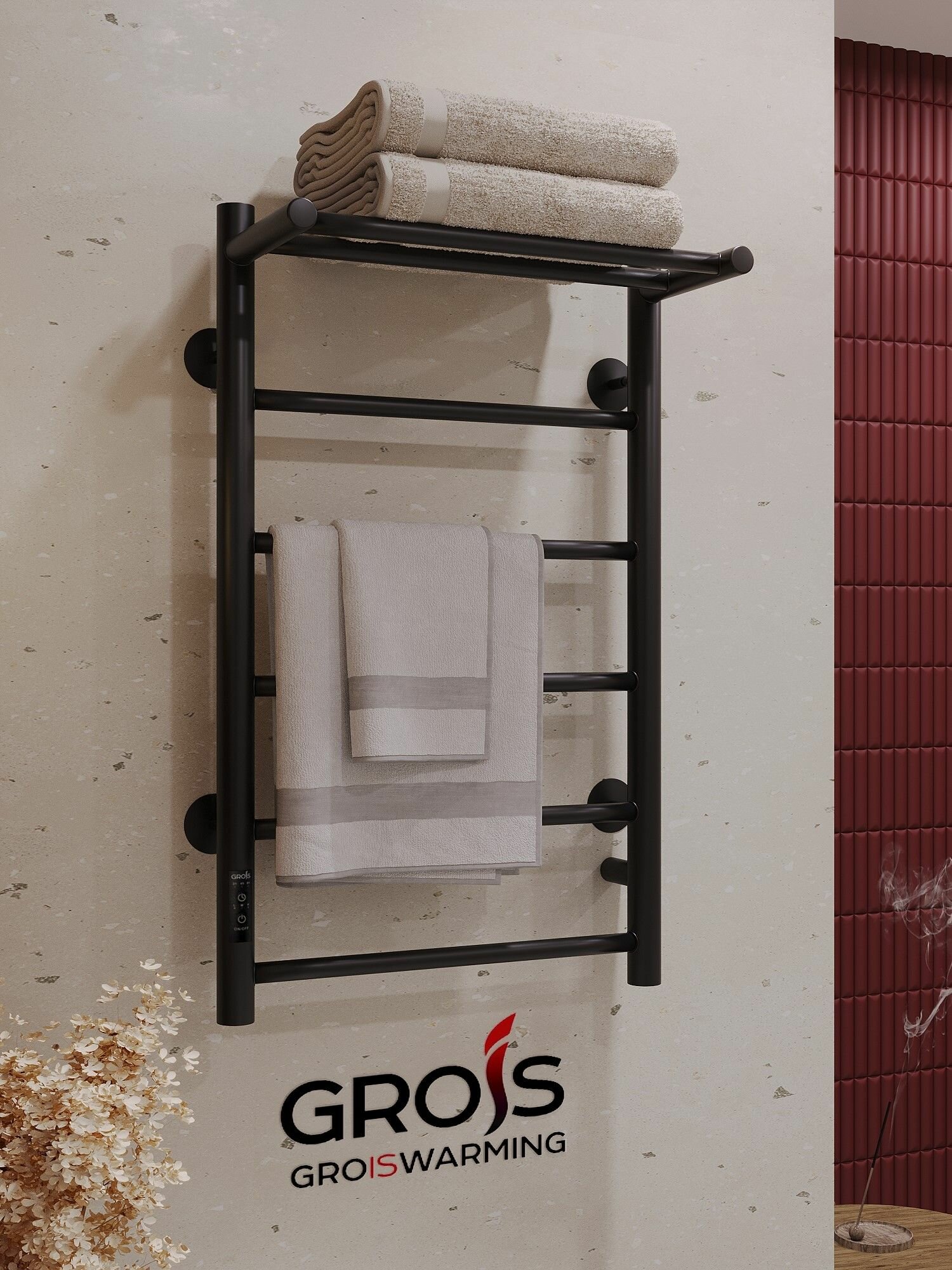 Полотенцесушитель Grois "Агата" GR-158, электрический, с таймером, стальной, черный