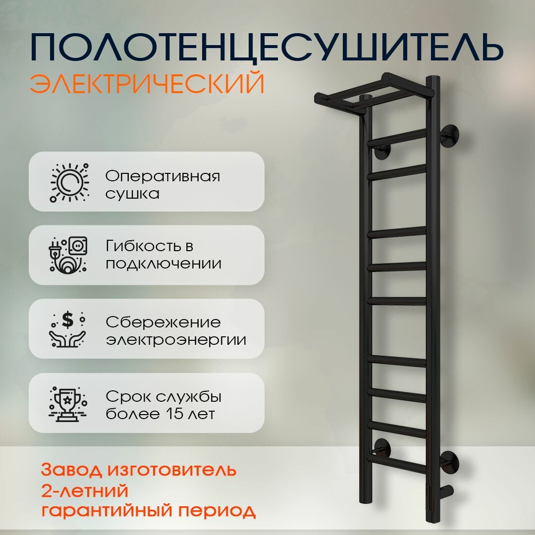 Полотенцесушитель Grois Лаура, электрический, настенный, черный, 40х70 см