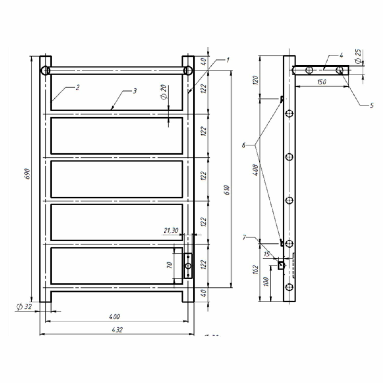 Полотенцесушитель Лаура GR-151 400*700 П5/2 с полкой левый белый