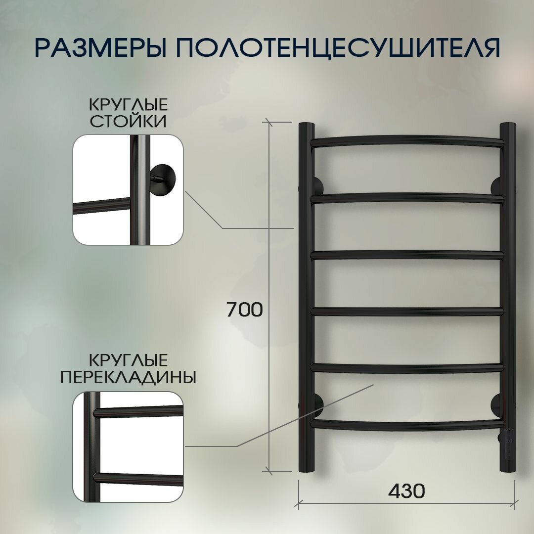 Купить Полотенцесушитель Лаура GR-154 400*700 П6 дуга правый черный