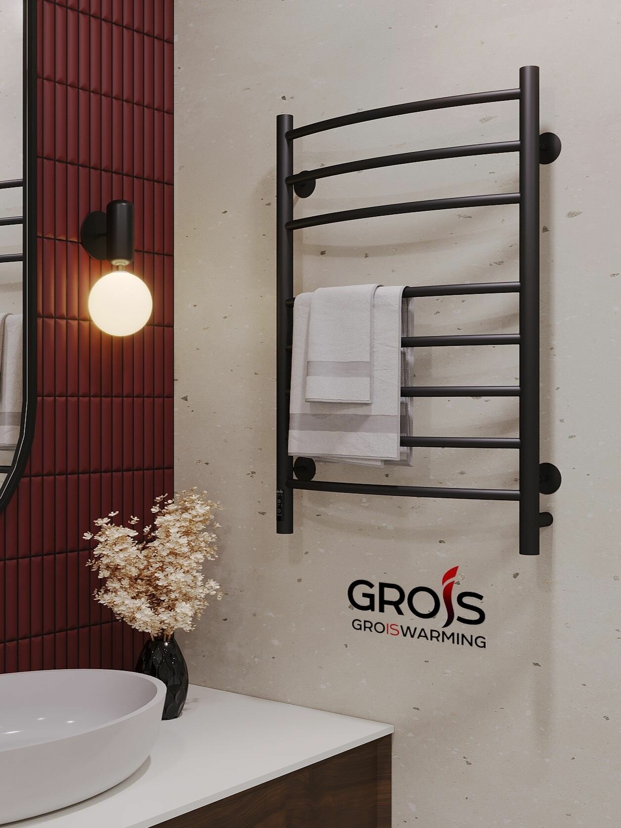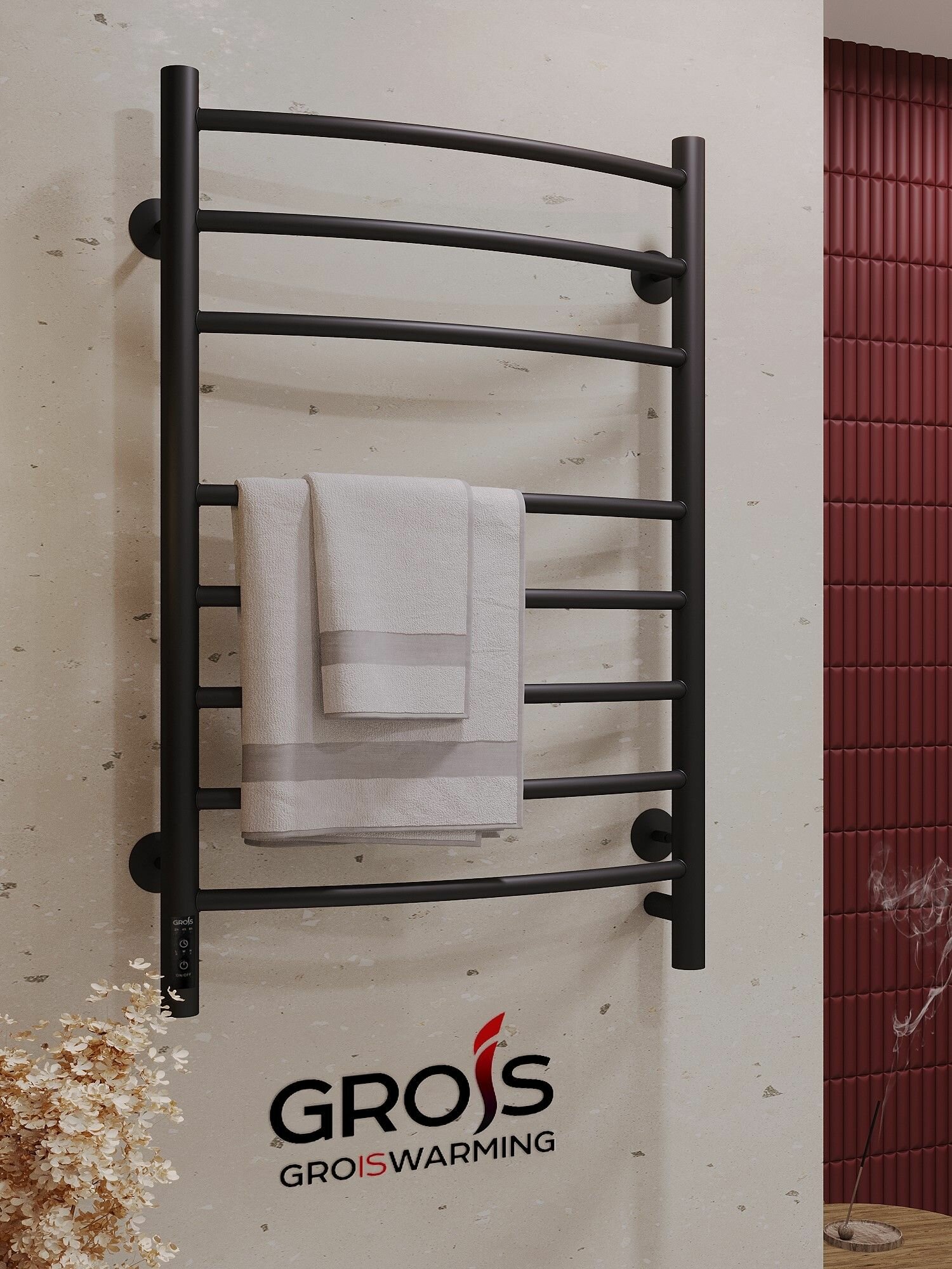 Полотенцесушитель Grois "Агата" GR-158, электрический, с таймером, стальной, черный