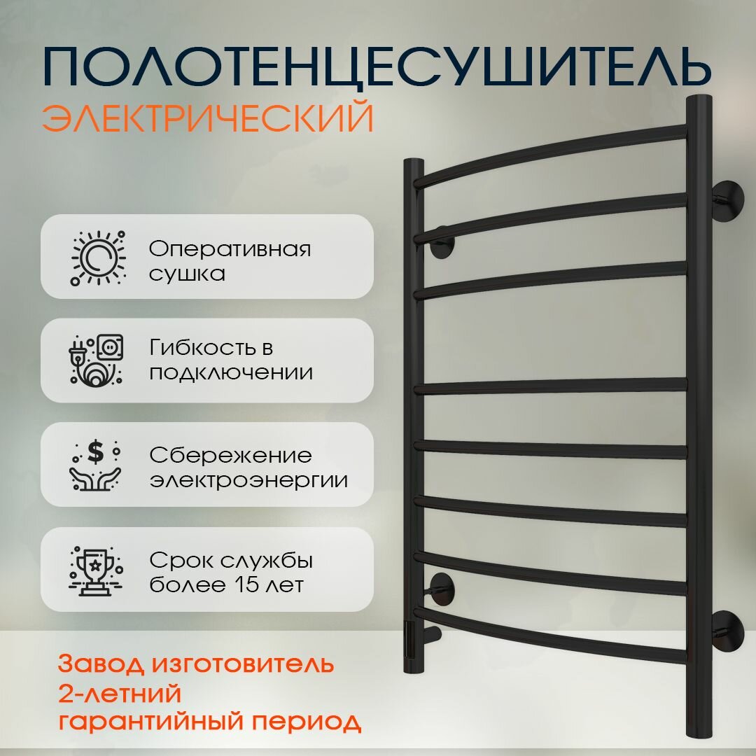 Полотенцесушитель Электрический Тругор Пэк сп 5 П 60х50 черный ВГП