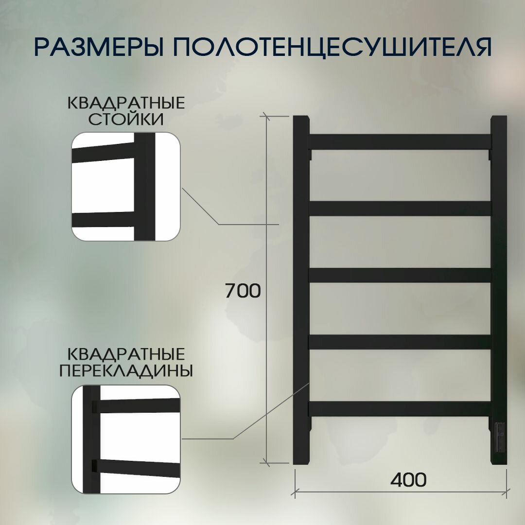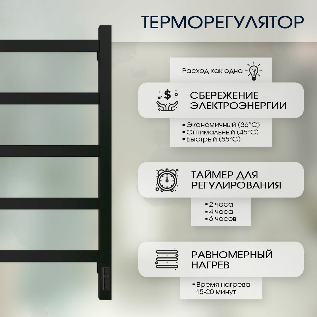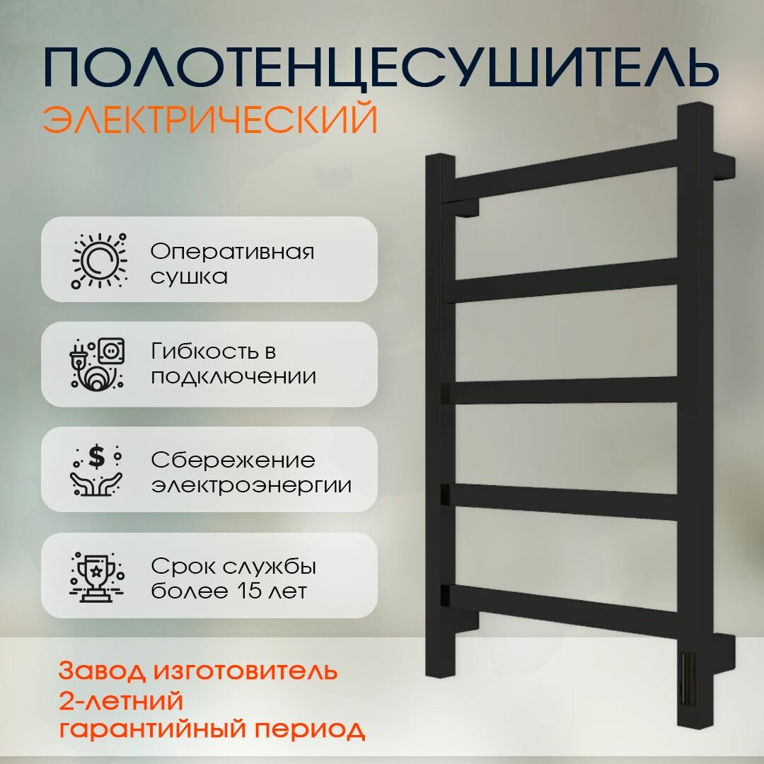 Полотенцесушитель Электрический Тругор Пэк сп 5 П 60х50 черный ВГП
