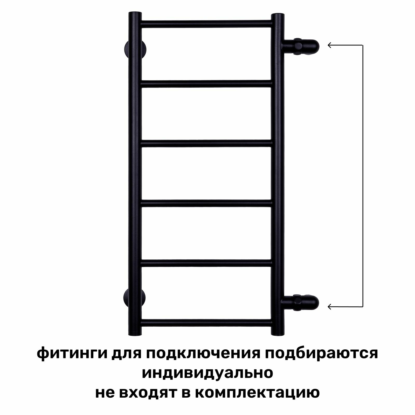 Полотенцесушитель Лесенка Прямая 750х500 черный матовый боковое подключение 1 дюйм