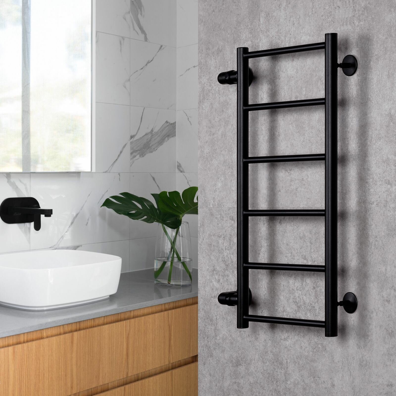 Полотенцесушитель Лесенка Прямая Люкс 600х400 черный матовый боковое подключение 1 дюйм