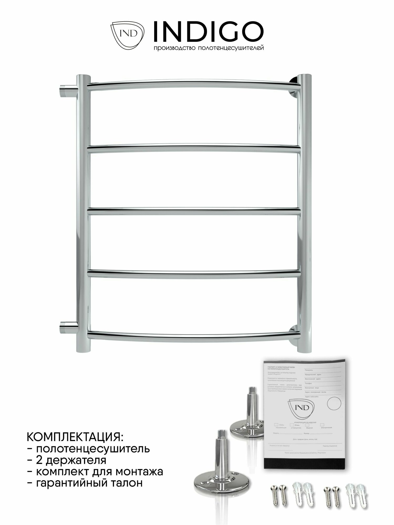 Полотенцесушитель водяной Arc 60/50 межосевое расстояние 50 боковое подключение, Полированный INDIGO интересное: