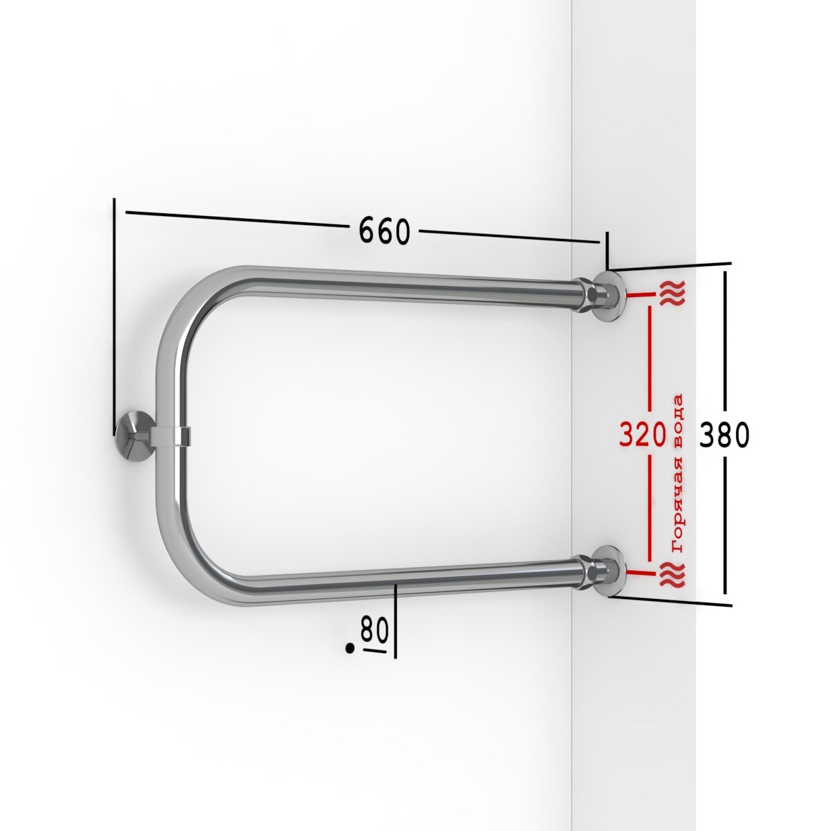 Полотенцесушитель Водяной Onix, модель Best Direct Chrome Right 320x800, П-образный, Хром, полный комплект, с защитой от электрокоррозии