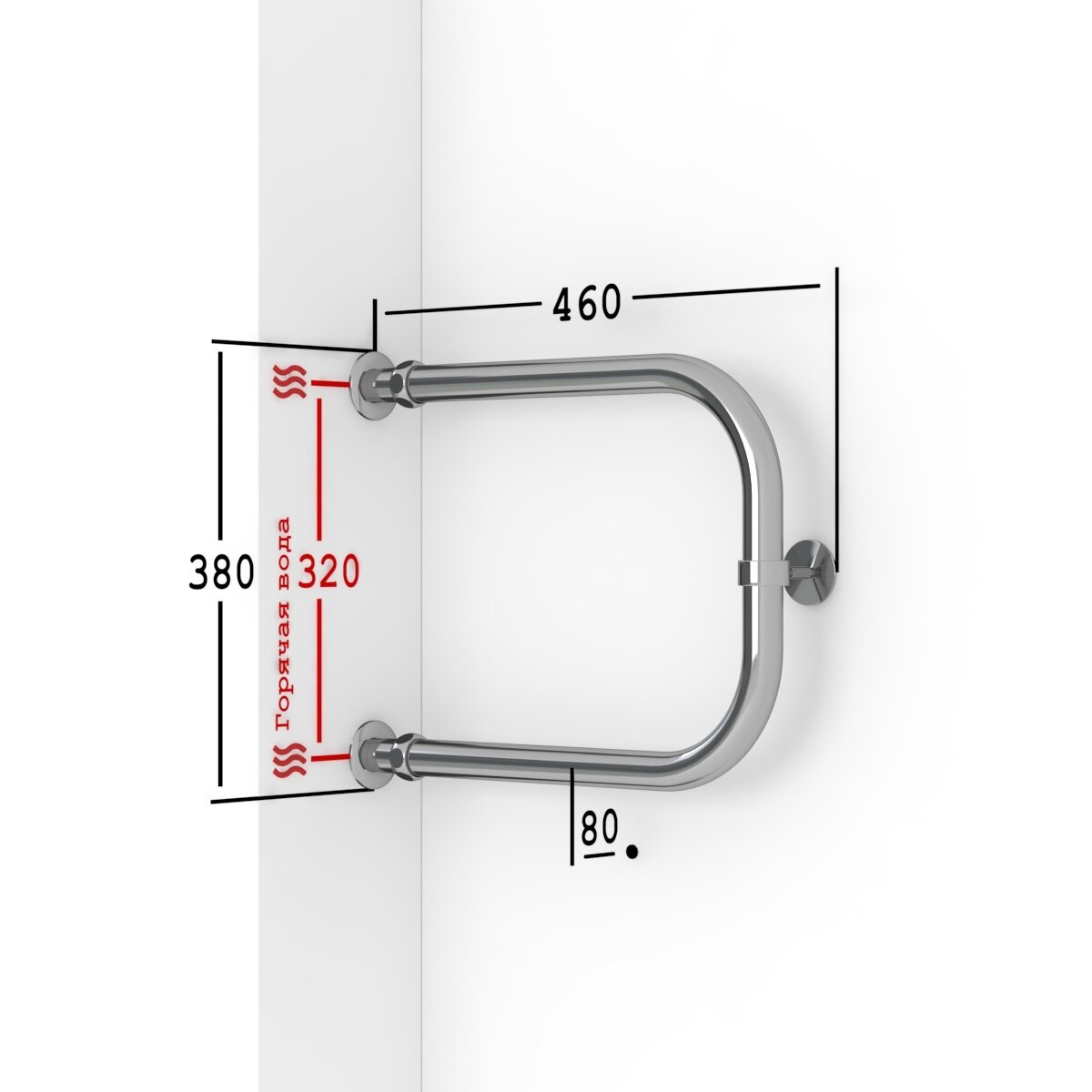 Полотенцесушитель Водяной Onix, модель Best Direct Chrome Right 320x800, П-образный, Хром, полный комплект, с защитой от электрокоррозии