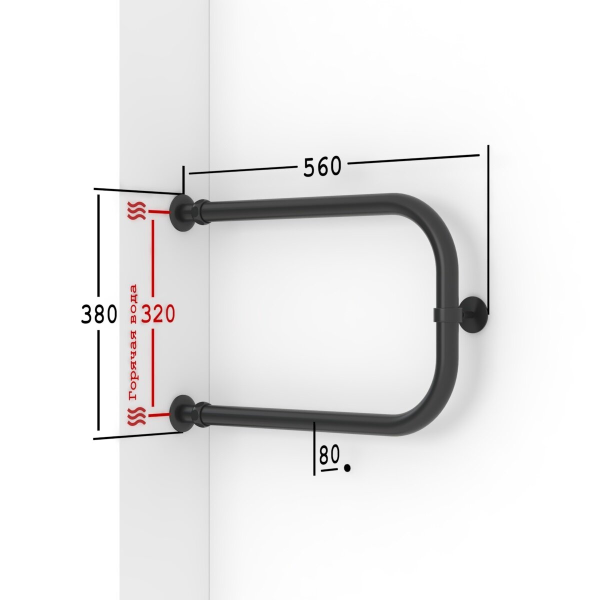 Полотенцесушитель Водяной Onix, модель Best Direct Black Right 320x800, П-образный, Черный матовый, полный комплект, с защитой от электрокоррозии