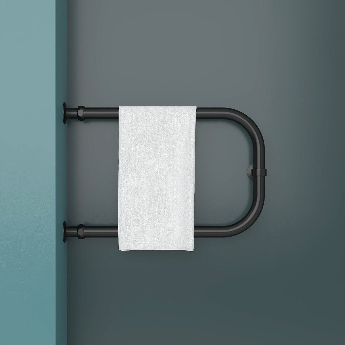Купить Полотенцесушитель Водяной Onix, модель Best Direct Black Left 320x500, П-образный, Черный матовый, полный комплект, с защитой от электрокоррозии