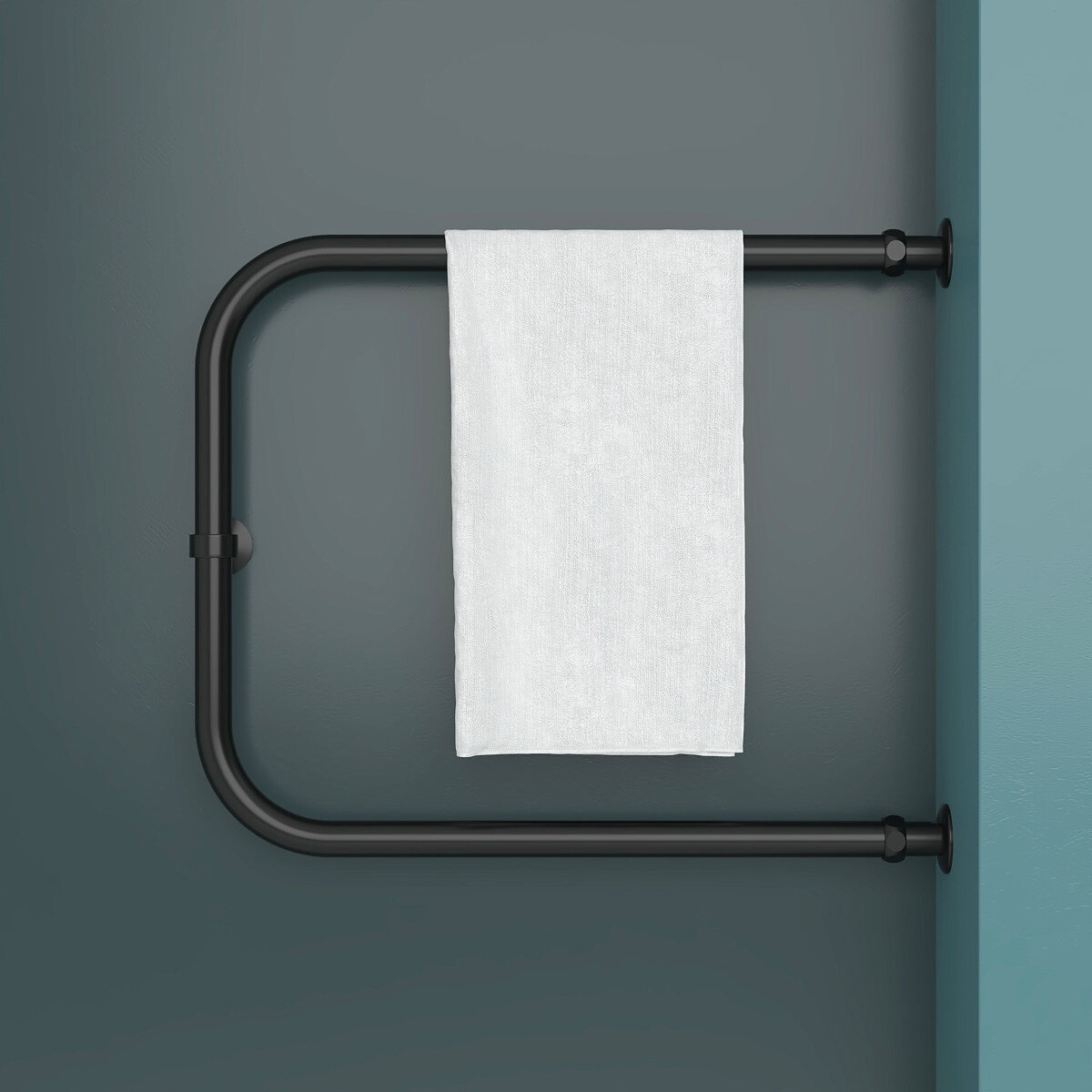 Полотенцесушитель Водяной Onix, модель Best Direct Black Left 600x600, П-образный, Черный матовый, полный комплект, с защитой от электрокоррозии