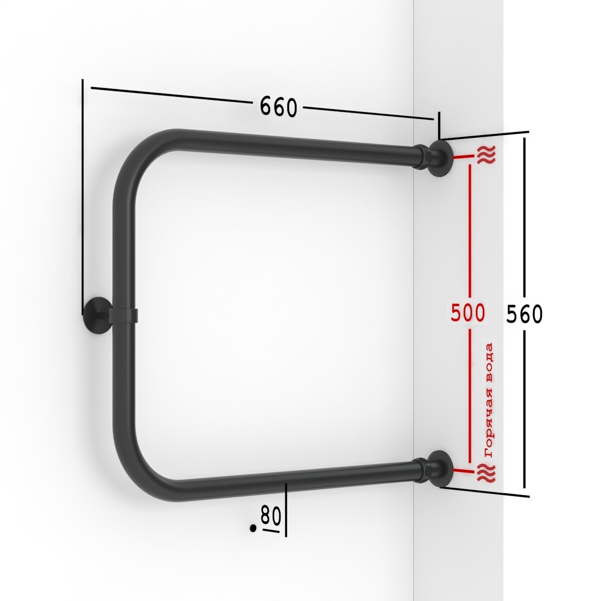 Купить Полотенцесушитель Водяной Onix, модель Best Direct Black Right 500x600, П-образный, Черный матовый, полный комплект, с защитой от электрокоррозии