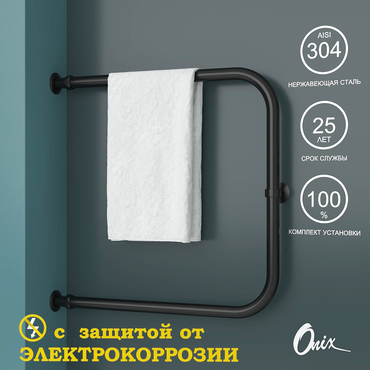 СохранитьПолотенцесушитель Водяной Onix, модель Best Direct Black Left 600x600, П-образный, Черный матовый, полный комплект, с защитой от электрокоррозии интересное:
