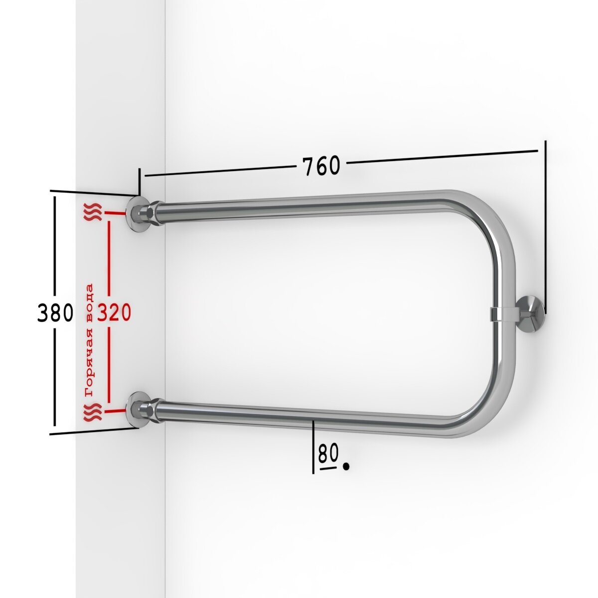 Полотенцесушитель Водяной Onix, модель Best Direct Chrome Right 320x800, П-образный, Хром, полный комплект, с защитой от электрокоррозии
