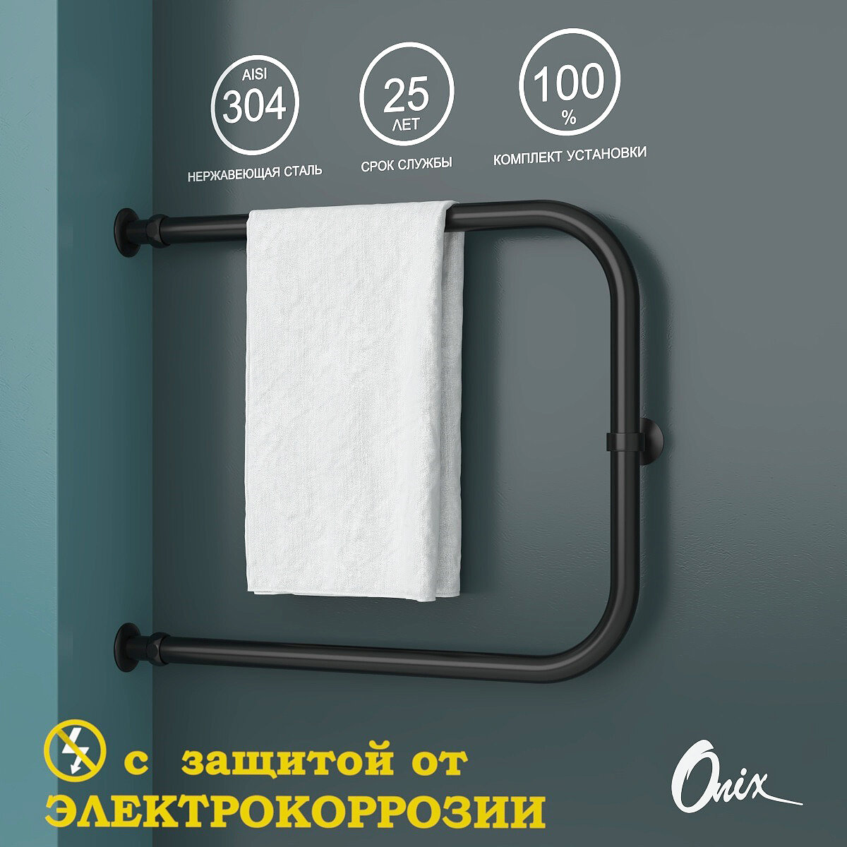 Полотенцесушитель Водяной Onix, модель Best Direct Black Right 500x600, П-образный, Черный матовый, полный комплект, с защитой от электрокоррозии