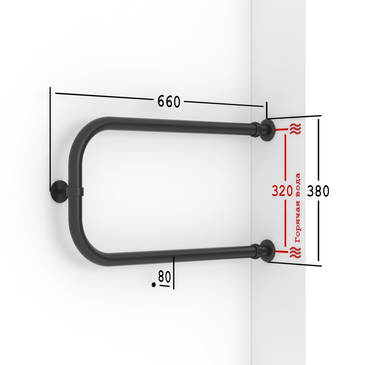 Купить Полотенцесушитель Водяной Onix, модель Best Direct Black Right 320x600, П-образный, Черный матовый, полный комплект, с защитой от электрокоррозии
