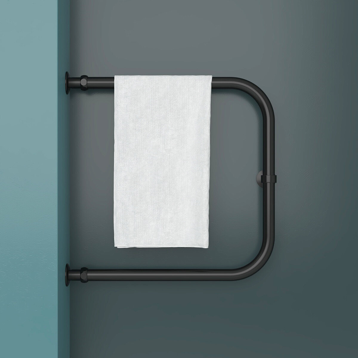 Купить Полотенцесушитель Водяной Onix, модель Best Direct Black Left 500x500, П-образный, Черный матовый, полный комплект, с защитой от электрокоррозии
