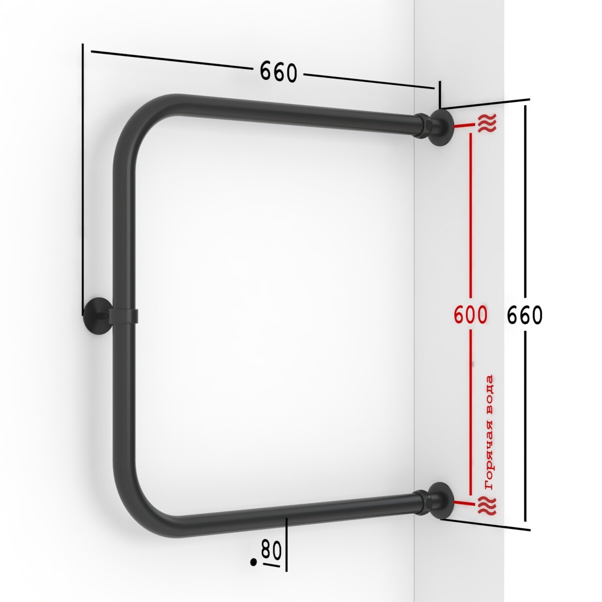 Купить Полотенцесушитель Водяной Onix, модель Best Direct Black Right 600x600, П-образный, Черный матовый, полный комплект, с защитой от электрокоррозии