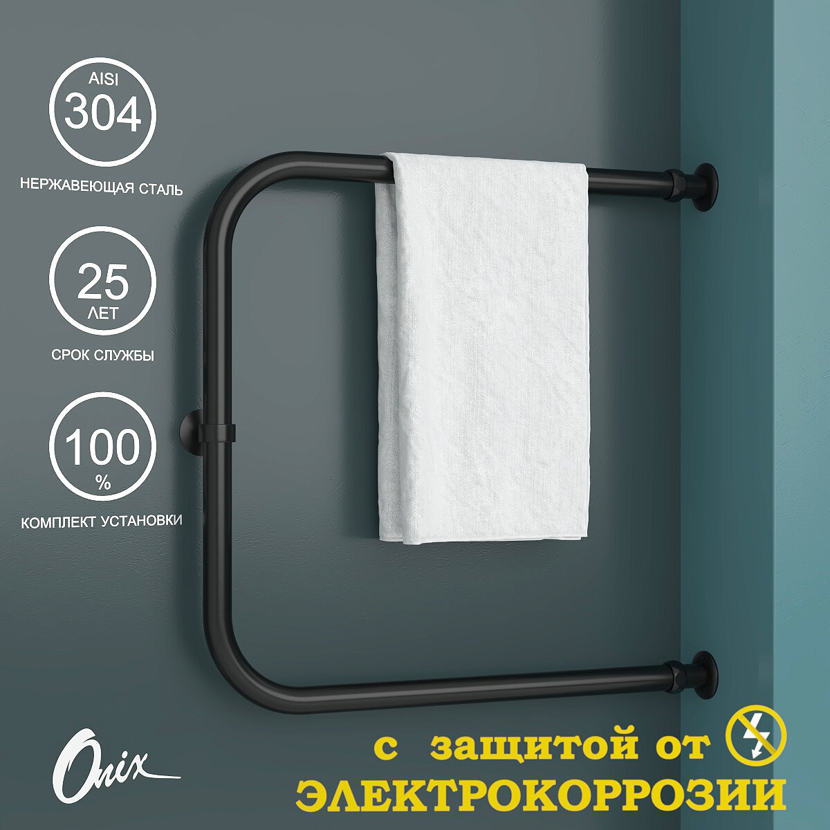 СохранитьПолотенцесушитель Водяной Onix, модель Best Direct Black Right 600x600, П-образный, Черный матовый, полный комплект, с защитой от электрокоррозии интересное:
