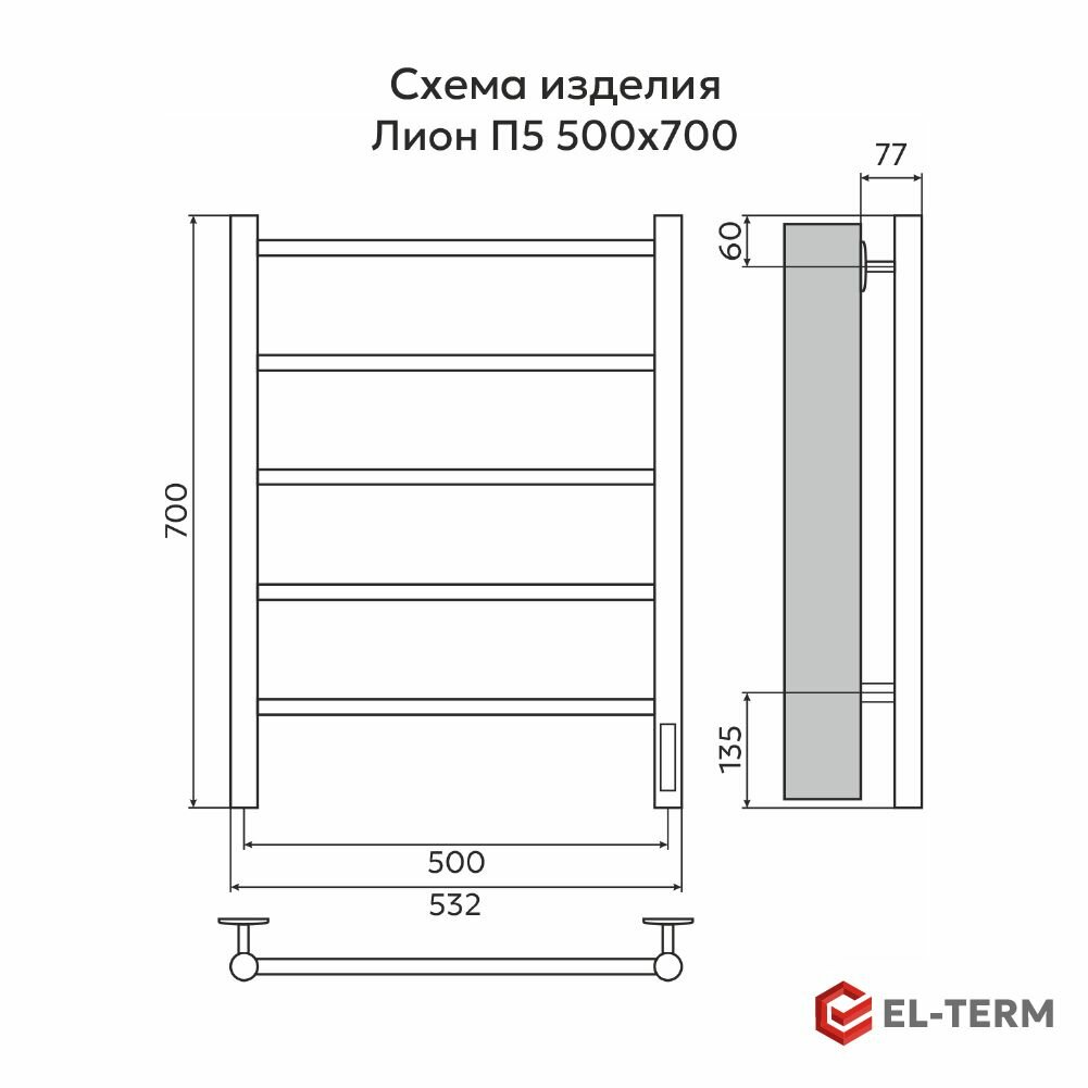 Купить Полотенцесушитель электрический EL-TERM (Эл-Терм) лион 500х700 мм, нержавеющая сталь, гарантия 5 ЛЕТ/ Электрический полотенцесушитель с терморегулятором