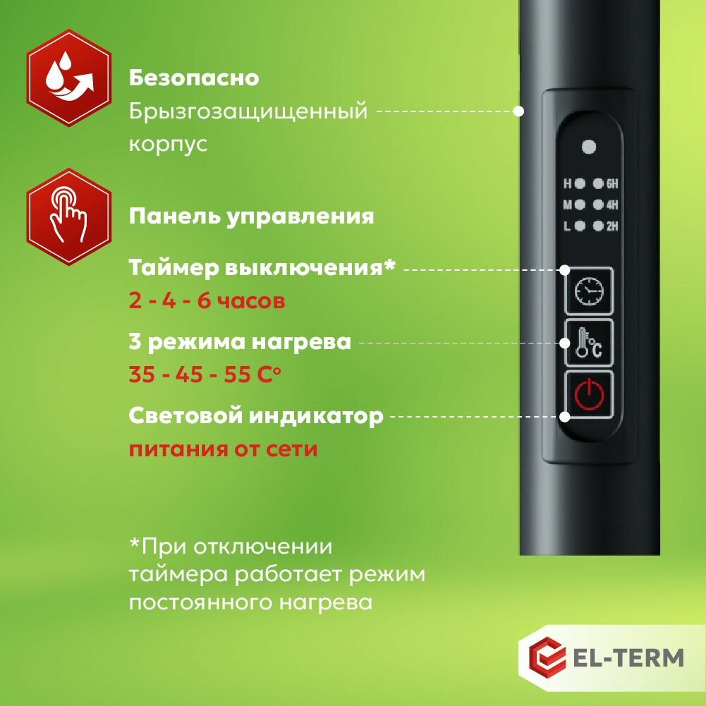 Купить Полотенцесушитель электрический черный EL-TERM (Эл-Терм) лион 500х900 мм, гарантия 2 года/ Электрический полотенцесушитель с терморегулятором