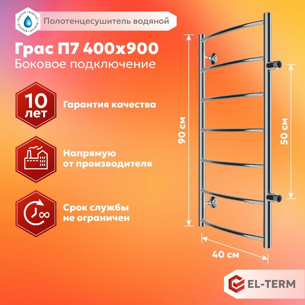 Купить Полотенцесушитель водяной EL-TERM (Эл-Терм) грас 400х900 боковое подключение 500 мм, нержавеющая сталь, гарантия 10 ЛЕТ/ водяной полотенцесушитель