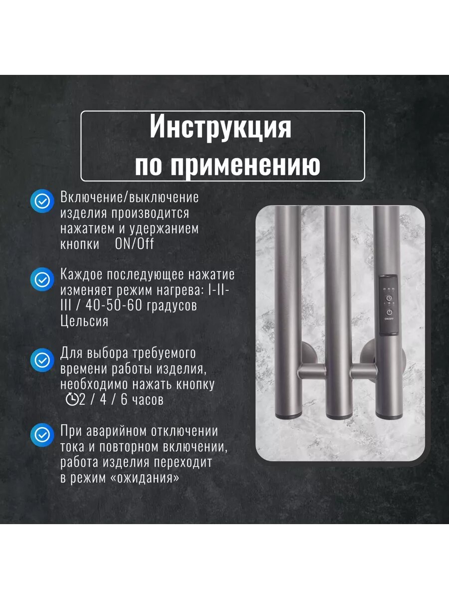 Полотенцесушитель электрический Графит Маргроид Вид Inaro-3 120x12 (серый, оружейная сталь). Кабель с вилкой 90 см. интересное: