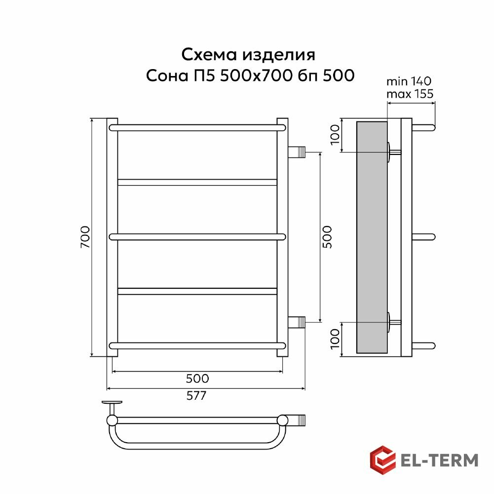 СохранитьПолотенцесушитель водяной EL-TERM (Эл-Терм) сона 500х700 боковое подключение 500 мм, нержавеющая сталь, гарантия 10 ЛЕТ/ водяной полотенцесушитель интересное: