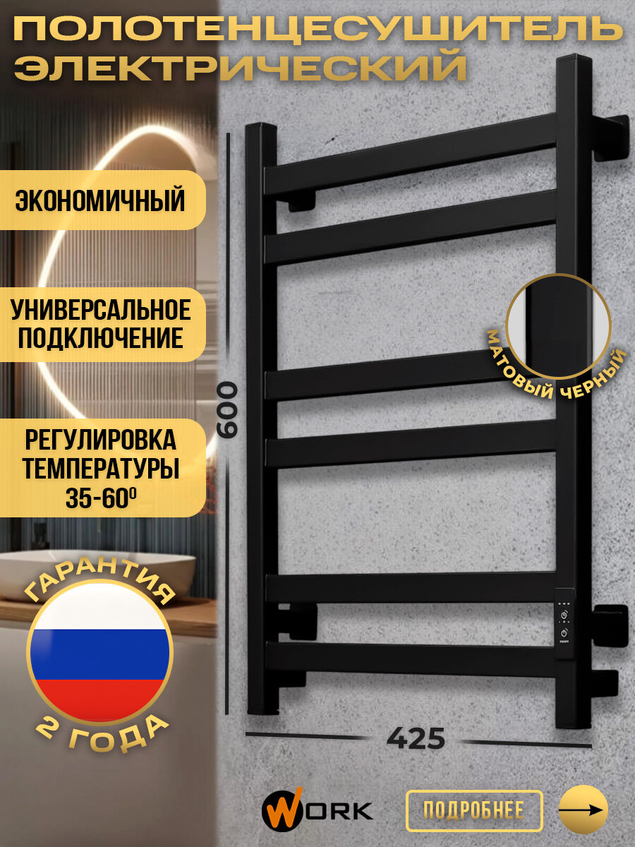 Полотенцесушитель электрический для ванной WORK 60х40 черный