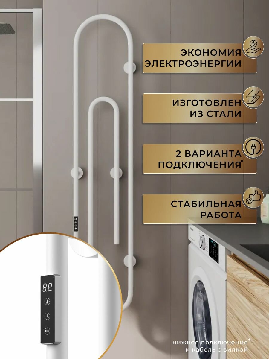 Полотенцесушитель дизайнерский электрический BAU Wall Clip White 150х30, белый матовый интересное: