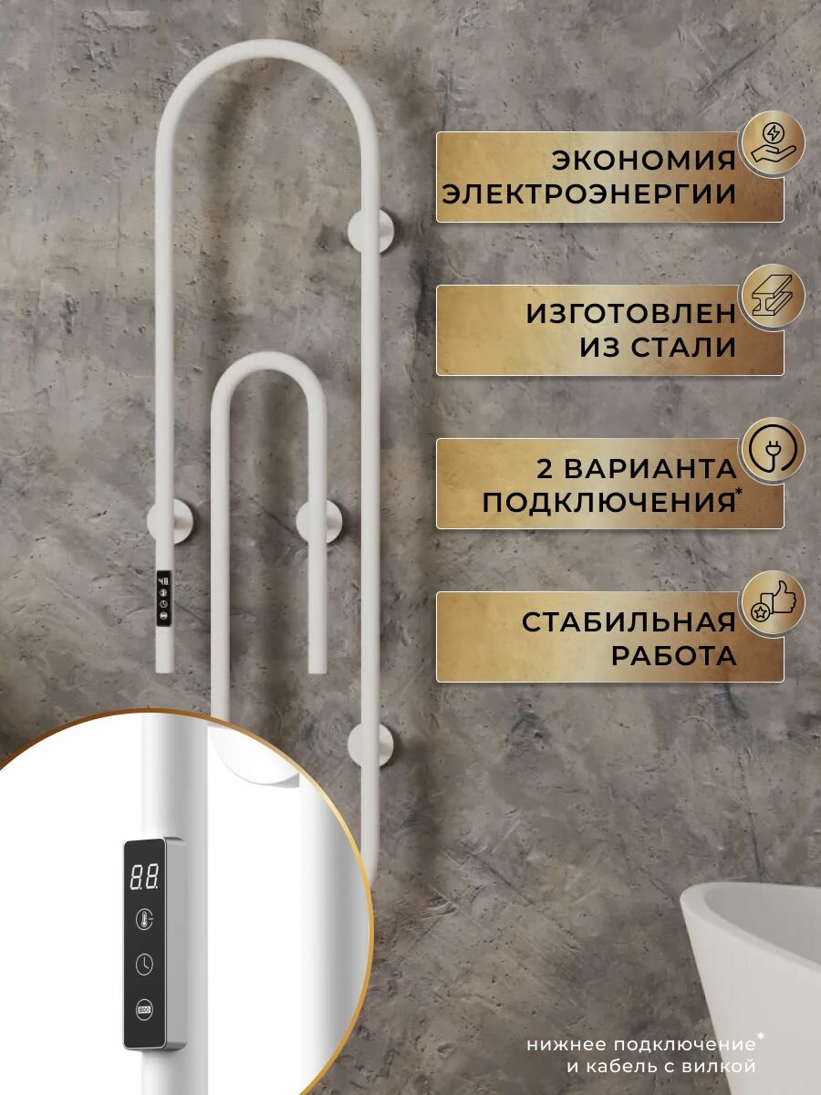 Полотенцесушитель дизайнерский электрический BAU Wall Clip White 120х30, белый матовый интересное: