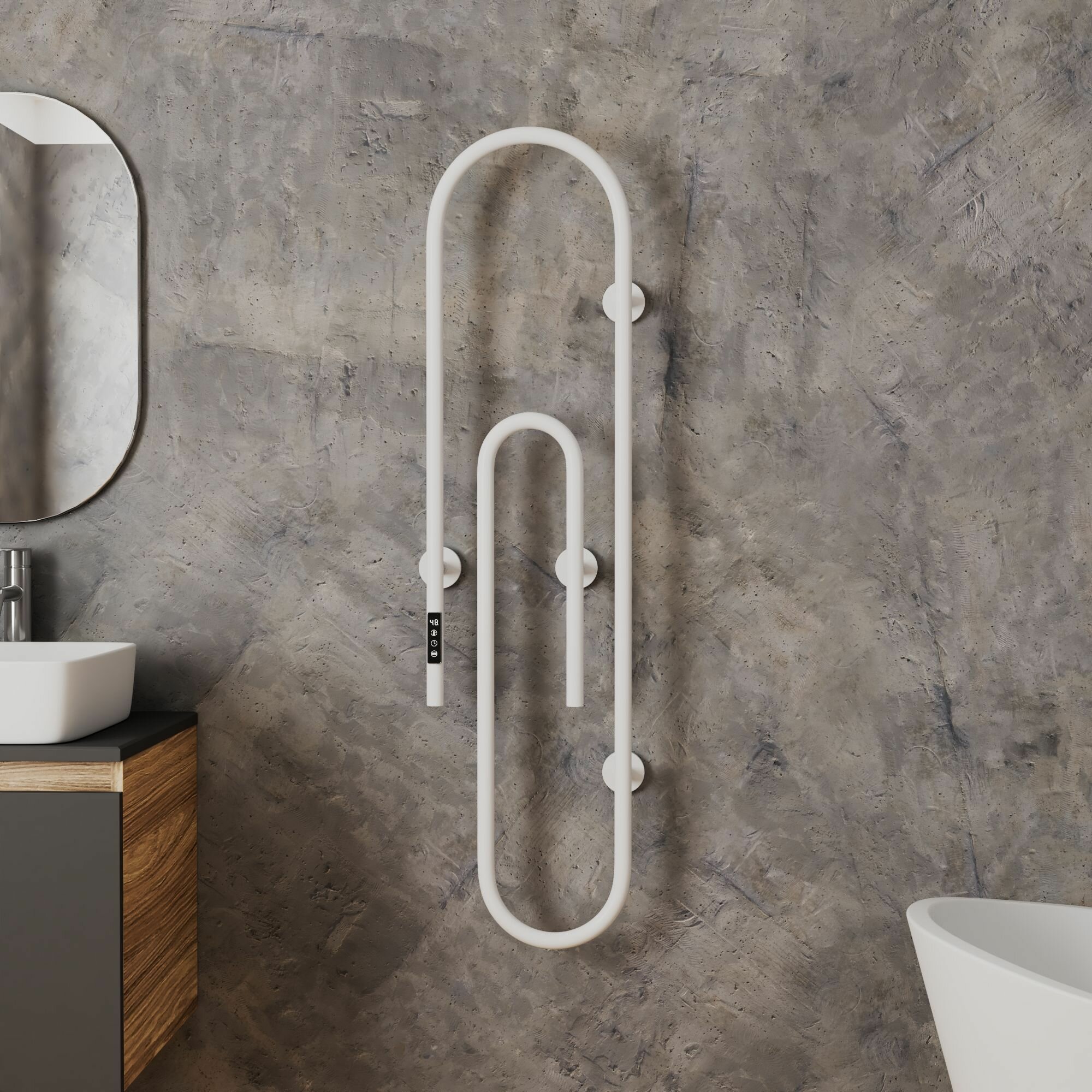 Полотенцесушитель дизайнерский электрический BAU Wall Clip White 150х30, белый матовый