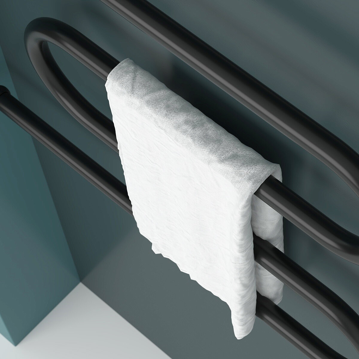 Купить Полотенцесушитель Водяной Onix, модель Hit Direct Black Left 600x800, М-образный, Черный матовый, полный комплект, с защитой от электрокоррозии