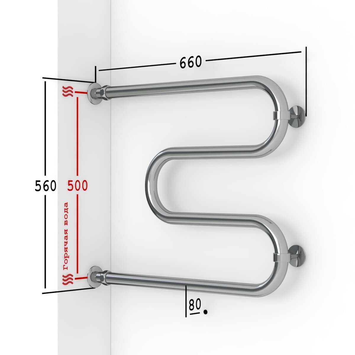 Полотенцесушитель Водяной Onix, модель Hit Direct Chrome Left 500x800, М-образный, Хром, полный комплект, с защитой от электрокоррозии