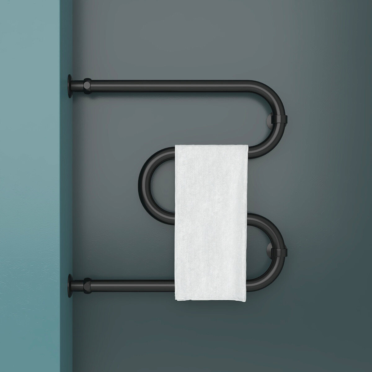 Купить Полотенцесушитель Водяной Onix, модель Hit Direct Black Left 500x500, М-образный, Черный матовый, полный комплект, с защитой от электрокоррозии