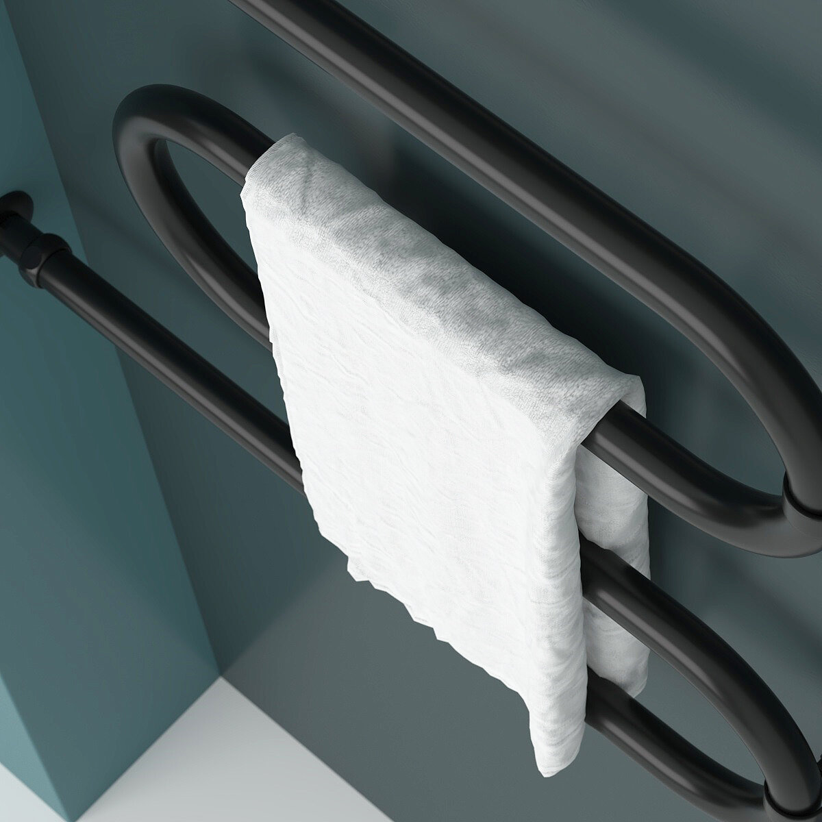 Купить Полотенцесушитель Водяной Onix, модель Hit Direct Black Left 600x700, М-образный, Черный матовый, полный комплект, с защитой от электрокоррозии