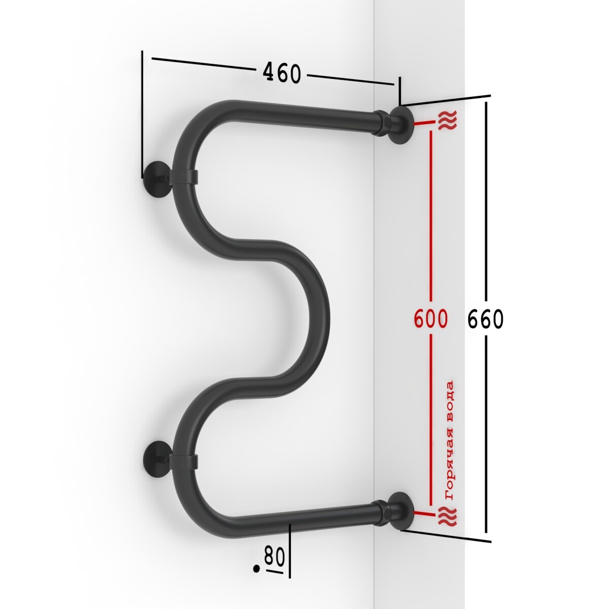 Полотенцесушитель Водяной Onix, модель Hit Direct Black Left 600x800, М-образный, Черный матовый, полный комплект, с защитой от электрокоррозии